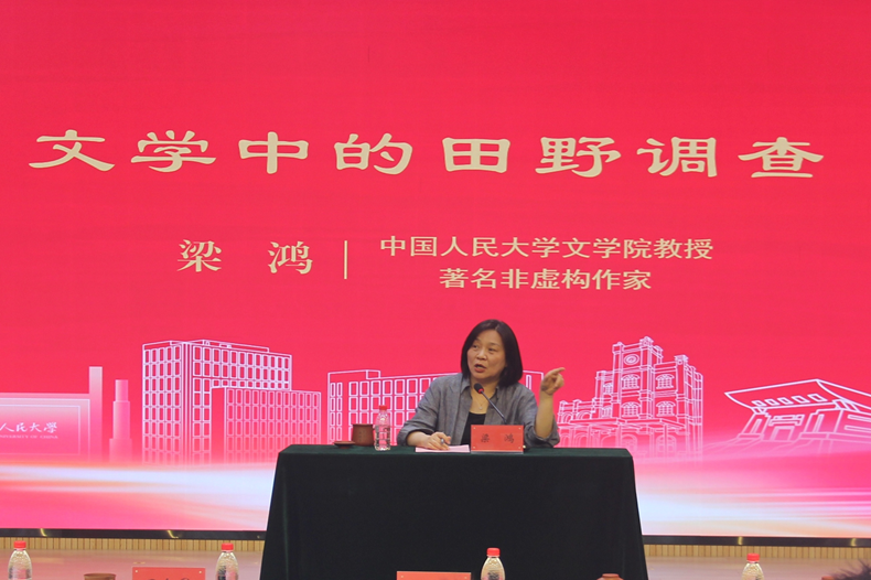 捐赠仪式结束后,梁鸿教授为师生带来“文学中的田野调查”讲座。讲座由颜梅主持。