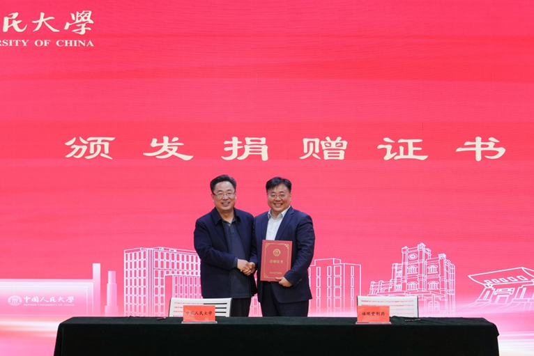 朱信凯代表学校向罗会军颁发捐赠证书。