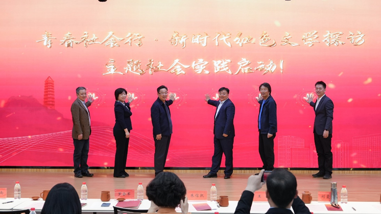 在全体与会嘉宾和师生的见证下,朱信凯、罗会军、王易、刘震云、陈剑澜、熊宇平等共同按下启动键,正式拉开“青春社会行——红色文学探访行”活动的序幕。